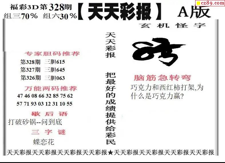 福彩3D2025328期天天彩报A版 天天彩报B版